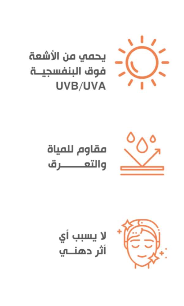 - أعيدي الاستخدام كل 3 – 4 ساعات عند التعرض الطويل للشمس أو بعد السباحة/التعرق.