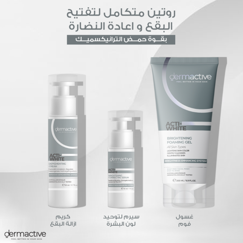 🌟 Acti-White… روتين متكامل لبشرة أفتح، أنقى وأكثر إشراقًا مع قوة حمض الترانيكساميك.
